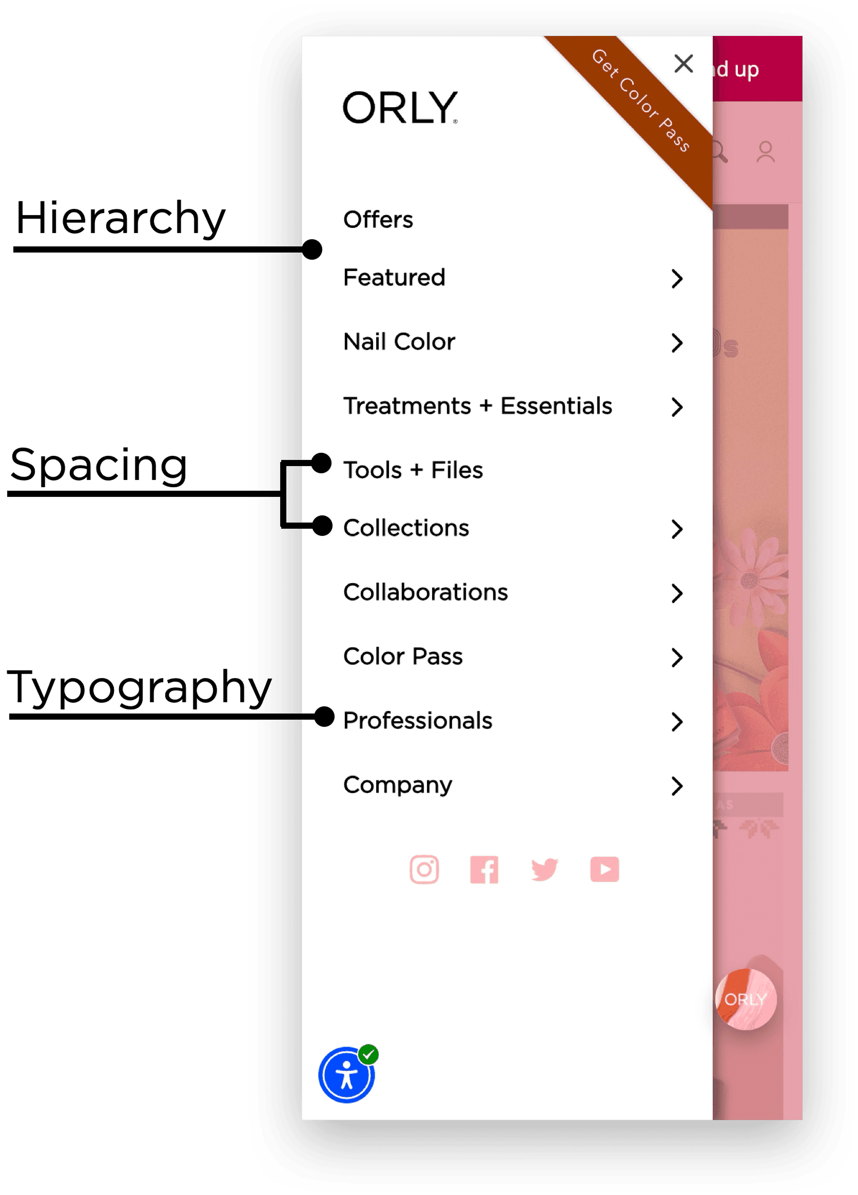 Users faced a flat navigation structure where primary categories looked identical to subcategories, making it difficult to quickly orient themselves within Orly's product catalog